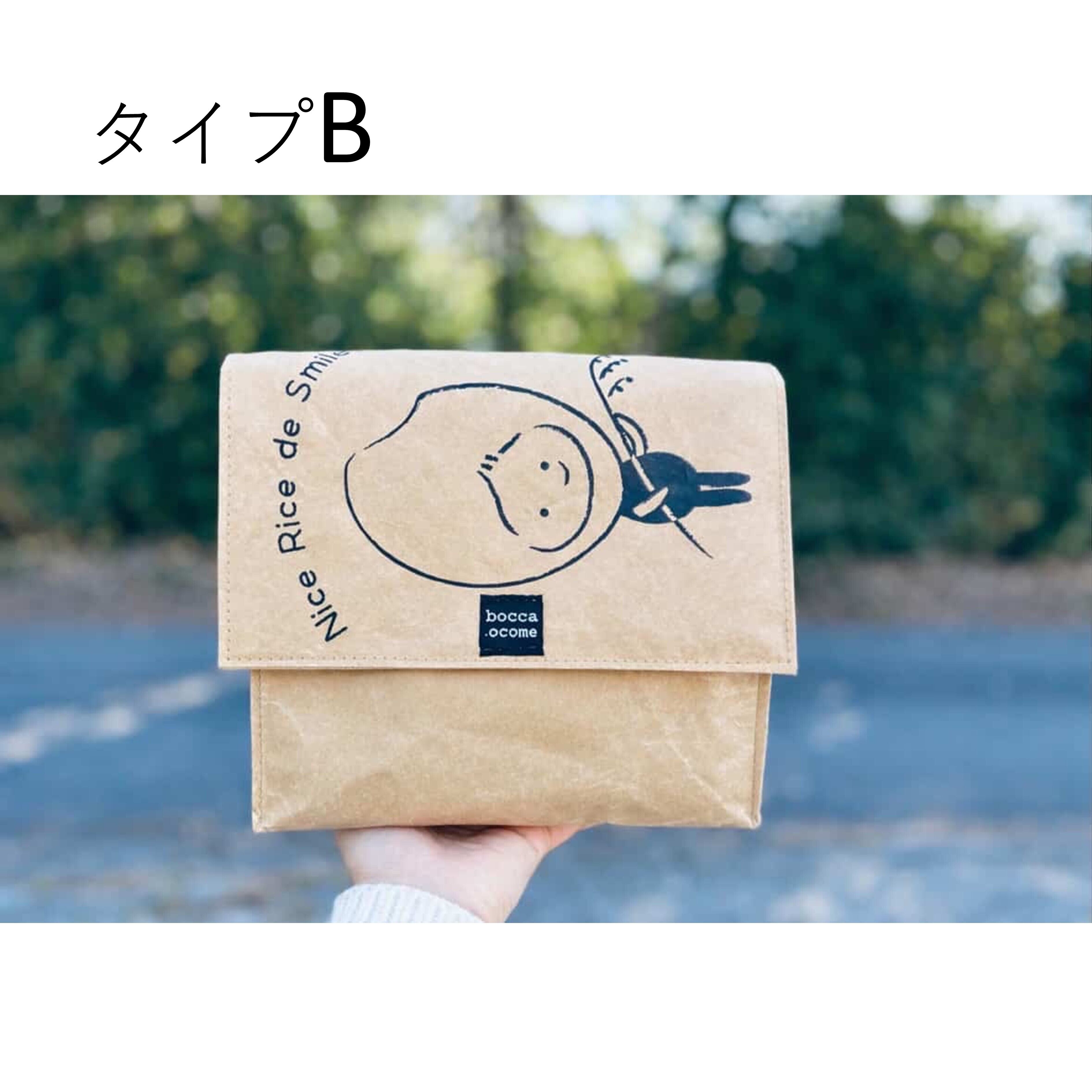 このバッグは、アップサイクルという考え方で使用済みの米袋に新たな価値をつけて世に送り出すハンドメイド作家のbocca(ボッカ)さんとコラボし、使い終わった米袋をバッグに加工した商品です。