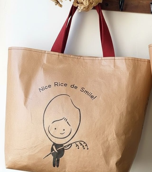 このバッグは、アップサイクルという考え方で使用済みの米袋に新たな価値をつけて世に送り出すハンドメイド作家のbocca(ボッカ)さんとコラボし、使い終わった米袋をバッグに加工した商品です。