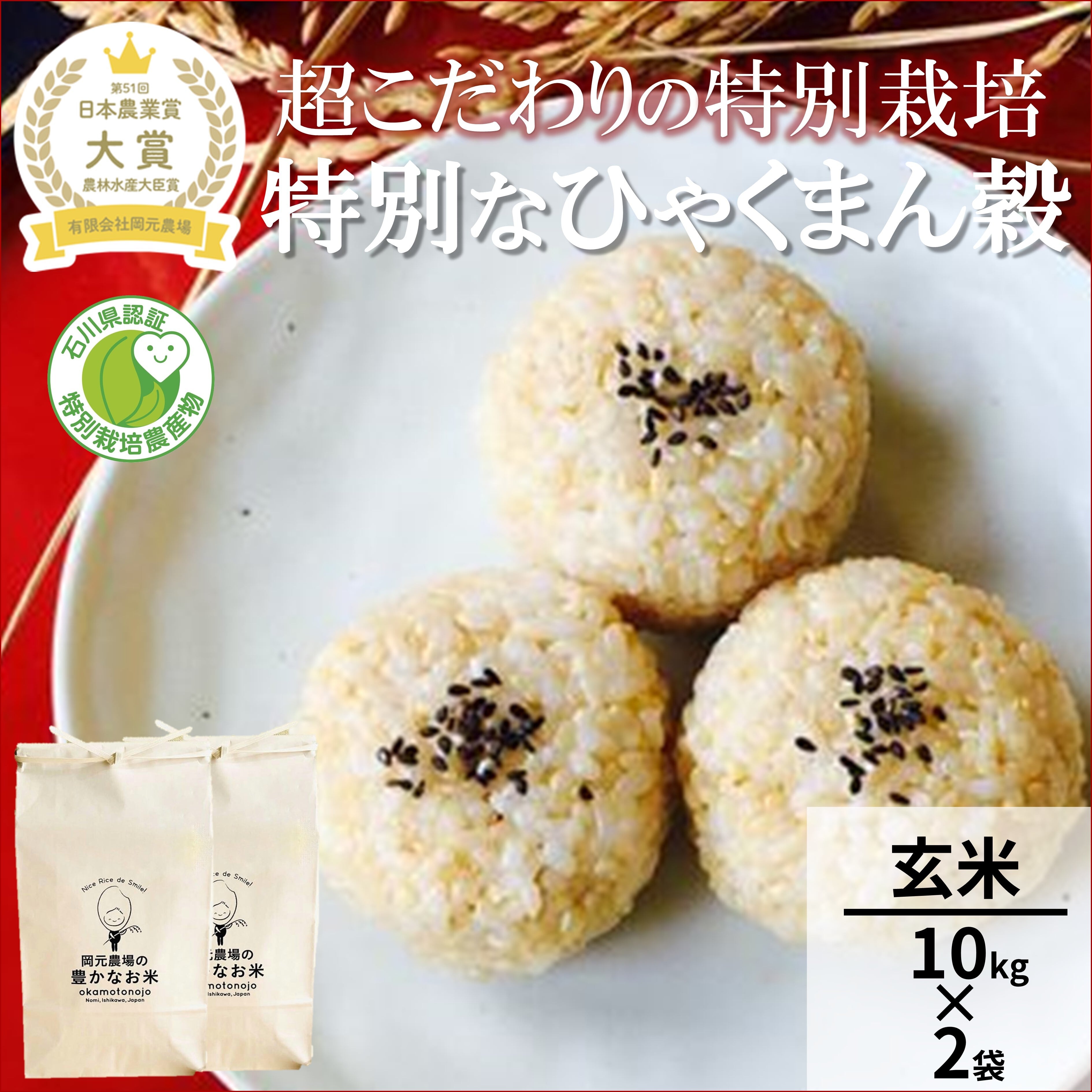 ・石川県の「特別栽培農産物」認証の特別栽培ひゃくまん穀です。