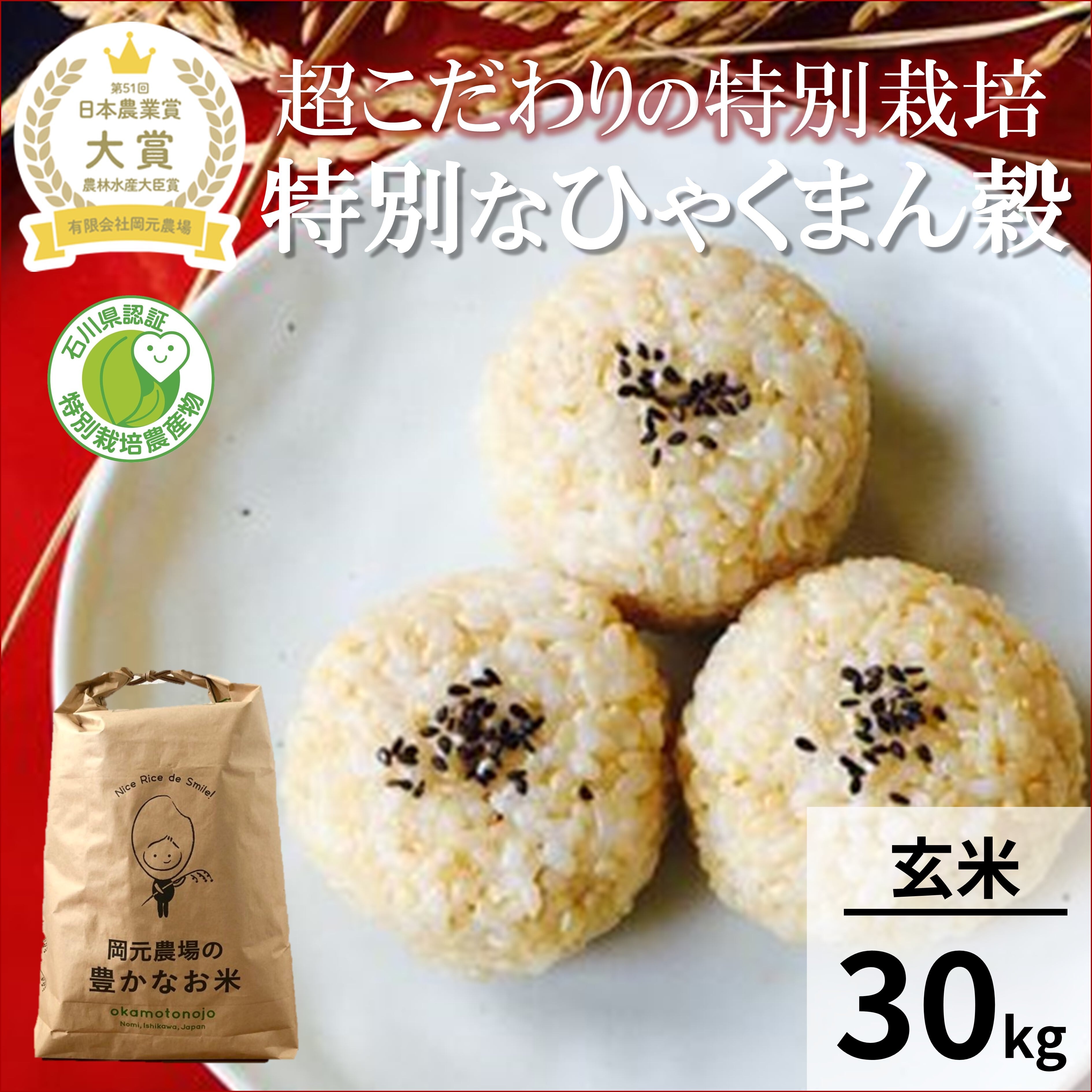 ・石川県の「特別栽培農産物」認証の特別栽培ひゃくまん穀です。