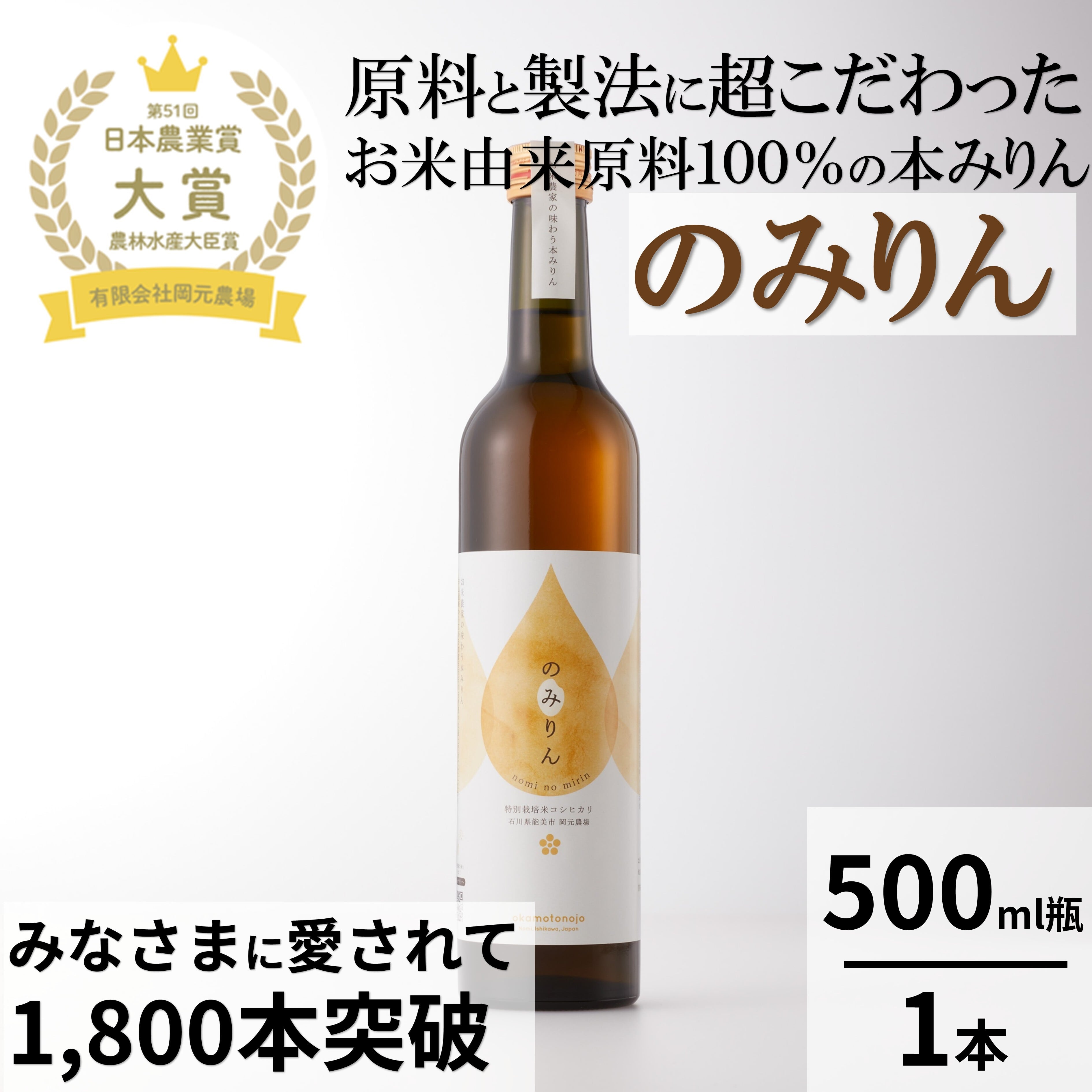 ・原材料はすべて米由来で、岡元農場の石川県産特別栽培米コシヒカリ、米こうじ、米しょうちゅうです。糖類も塩も不使用の本物の本みりんです。